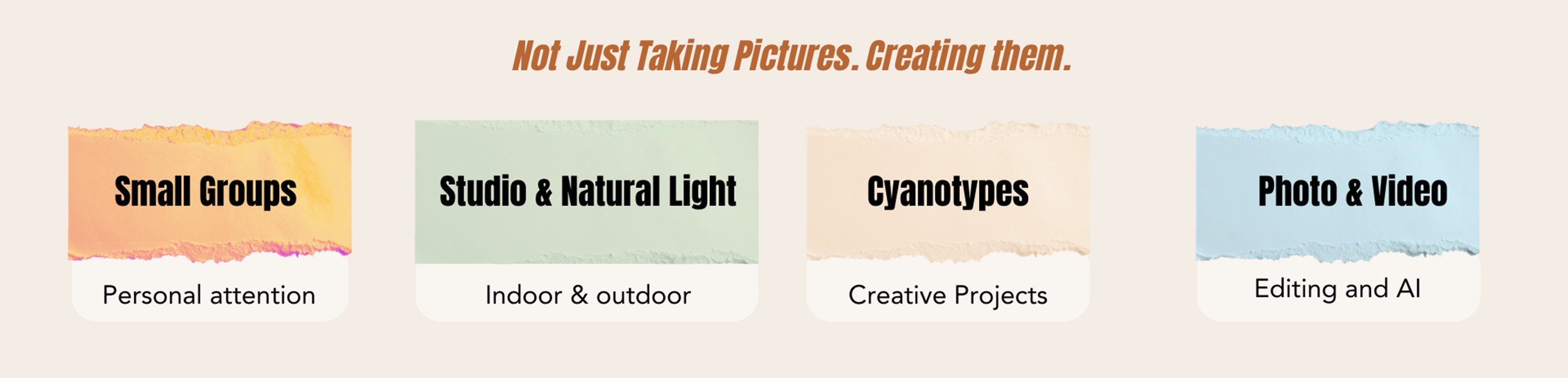 Our small group camp includes lunch, camp gear, and guided instruction in photography, video, creative processes like film and cyanotypes, and age-appropriate AI projects. Designed for beginners through teens, our Orange County photography camp builds confidence, creativity, and real camera skills.